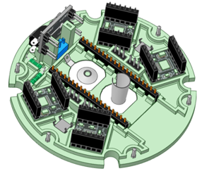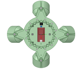 All of the robot chassis components were produced on my 3-D printer and modelled using 3-D design package, like RS Components, DesignSpark Mechanical. For this design I constructed an assembly of the complete robot, to ensure that all of the parts aligned. This included simple models of all bought components like the motors and H-bridge driver pcb’s. Given the limitations of 3-D printing, the chassis consists of a number of parts screwed together. The top micro plate mounts the majority of electronic components, with easy access to the ESP32 micro for coding updates..