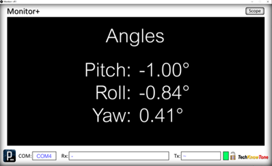 You can switch back and forth between controller adjustment and the graphing tool, so you can also see the effect on data sent from the robot. The Scope tool allows you to access different sets of data from the ESP32, just by clicking on a number field. The graph can be dynamically adjusted automatically, showing min/max values or set to specific ranges, and if the graph is paused you can inspect the data points simply by moving the mouse pointer over the graph, to draw on the underlying data.