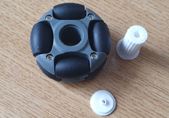 The lower body consists of two plates, to provide a strong platform on which to mount the motorized legs, which are adjustable to suit a range of ball sizes. You will need small drills, and metric taps, to be able to put threads in some of the holes in this design. The castellated crown enables the robot to be stood upside down on its head, for an automated motor and wheel demonstration.
