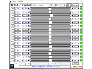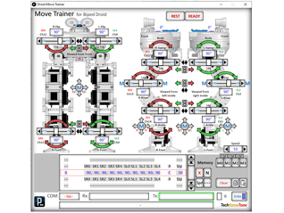 A critical step in building a project like this is in attaching the servo motors leavers and calibrating their respective angles, by recording and storing PWM values in code. To simplify this task I developed a 16 channel controller app which provides adjustable sliders for each servo. Values are then simply cut-n-pasted into your code. Then, as leg movements can be complex, having 5 servos in each, I developed a Move Trainer app which enables you to create a series of movement points through which all 10 servos can be driven. This links with the code in the project, which also allows for linear and non-linear movements, like acceleration and deceleration. Complex moves up to 100 leg positions can be created and simply cut-n-pasted into your code, and copied back into the app for further refinement. This process also works over the wireless interface, so the droid is not tethered by the USB lead. The third app works as a simple plotter of range v angle values obtained from the VL53L0X laser range finder. I hope you find them useful.