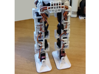 The lower legs consist of plates, to provide mounting frames for the servo motors, and joints for hip, knee and ankle movement. The use of screws makes it easy to maintain the droid, should you wish to disassemble it to replace a part or change its appearance in some way.