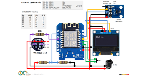 One of the first projects I did when learning about Arduino was to make a Fake TV simulator, using LED lamps from a torch. It’s worked well for several years, so now I’ve revisited the project to bring it up to date using programmable RGB LEDs and an ESP8266 IoT micro. This really is a useful thing to have in your home.