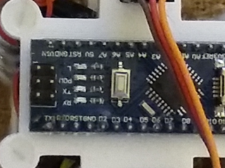 Two additional modes are accessed via the RESET button, the first with increased sound volume and the second with no sound or movement. This feature uses the EEPROM memory. If the unit is simply powered up or RESET it will always play the default low volume fully animated sequence. However if you press the RESET button again whilst the on-board LED is flashing, the NANO can record that in EEPROM memory. So one additional RESET whilst the LED is flashing will give mode two, and a third RESET will give the third mode of operation.