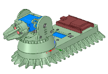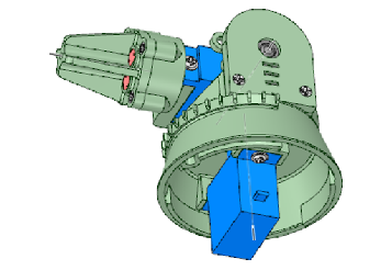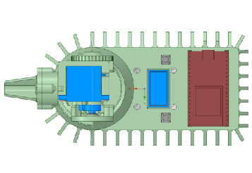 The main body is essentially made in two halves, held together by small screws. This makes the overall assembly easier to build and offers a degree of maintainability. The pan mounting has graduations built into it to make the calibration process for the two servos simpler to achieve. This element of the design could be used as a stand-alone pan & tilt solution for another project.