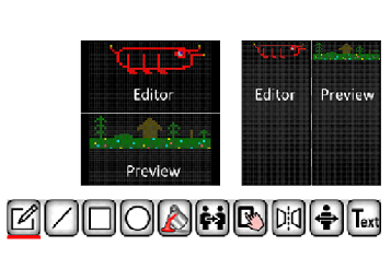 The Matrix app was developed in ‘Processing’ an environment very similar to the Arduino IDE, and you can download the Java executable file from a link below; which runs on a PC without the need to be installed. The left-hand graphics editor supports multiple panel formats, and provides a range of drawing tools like freestyle pen, line, box and circle, as well as more sophisticated options like flood fill, cloning, moving, mirroring and flipping areas, as well as a simple text drawing mode.