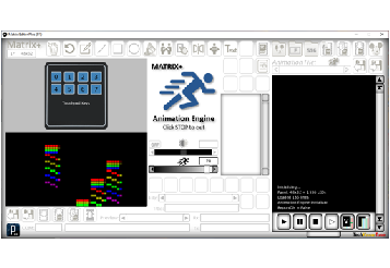The right-hand side is the animation script editor, which is like a simple programming language, with commands like ‘Bright’ to set the LED brightness, and ‘Speed’ to set the animation frame rate Just like conventional animation, the script supports multiple planes, used to build up the output image, and special functions like scrolling text and sprites. The editor is a ‘click’ to select and modify tool, with the only need for typing being to enter text for comments and display purposes. There is a simple help system too, which details the controls currently under the mouse pointer..