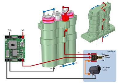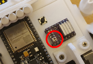 The DRV8825 stepper motor drivers have current sensing, to control the amount of energy being fed into the motors, and the boards have a small potentiometer for adjustment. To aid setting this current limiting up, for each driver board, the robot can be fed power from an external DC power supply via a socket, mounted on the rear of the robot. If the current is too small, the stepper motors will have limited torque; where as if it is too large, the motor will run very hot and could be permanently damaged, relatively quickly.