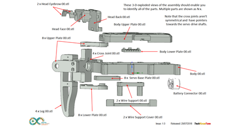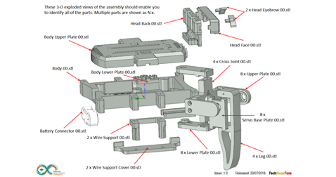 3-D Parts - a pdf file which identifies the 3-D parts, and the quantities of each you will need to print.