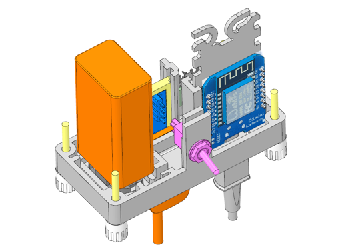 The 3-D design was produced using Design Spark Mechanical, based on an assembly of all of the components, including models of the electronic components, like the WEMOS D1, the PP3 battery, voltage regulator, switch etc.