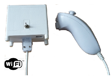 Like its predecessor this unit uses a rechargeable PP3 9v battery, but now contains a WEMOS D1 ESP8266 microcontroller board and a 64 x 128 OLED display. It’s role is to convey demands from either a Wii Nunchuk or Classic controller, as well as act as a transparent link between your project and an application running on a PC.