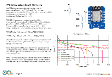 The circuit diagram is shown here on the left, with the WEMOS D1 connected to the OLED display and small Wii adapter pcb. The battery voltage is sourced via the ON/OFF toggle switch, a diode and a 5v voltage regulator. The diode has been added to prevent accidental damage to the electronics, should the switch be ON and the battery is applied the wrong way round to its connector. The battery voltage is also measure by the micro, via a potential divider circuit, to indicate power loss to the user. I have included a discharge curve and an explanation of how the limits in the code are derived, which you can set accurately with a multimeter if you like.